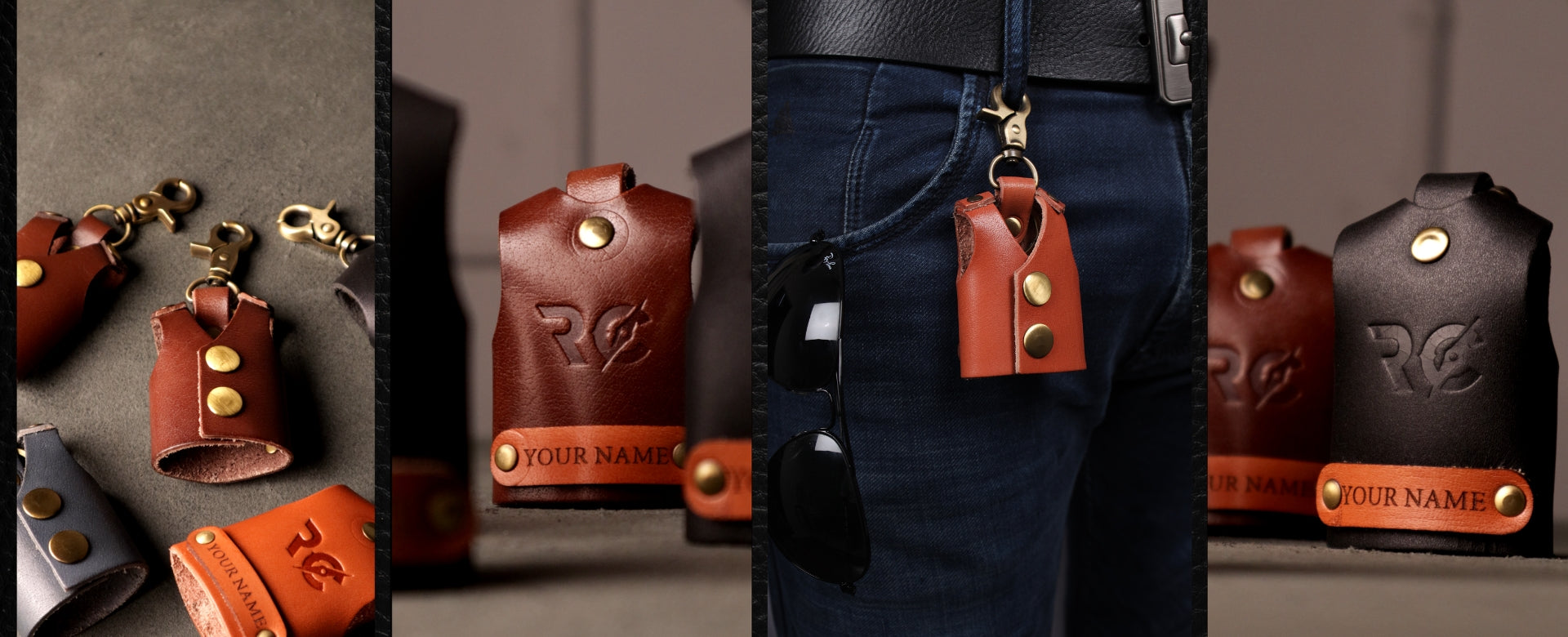 LEATHER VEST KEY CHAIN - COGNAC